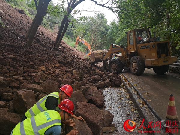 7月22日上午,雨后初晴的天氣涼風(fēng)習(xí)習(xí)。在國道318線萬州境內(nèi)長嶺與長灘兩個鎮(zhèn)鄉(xiāng)之間的一處塌方體前,吳興建正在操作著熟悉的裝載機(jī),加緊搶通道路。正實(shí)行半幅通行的公路上,車流如織。項(xiàng)目副經(jīng)理孟紅偉正帶領(lǐng)搶險(xiǎn)突擊隊(duì),在另一側(cè)山體上加緊清理前幾天被山洪沖垮、引發(fā)塌方的堆積物,并組織機(jī)械人員疏通排水溝,砌筑片石混凝土擋墻。
